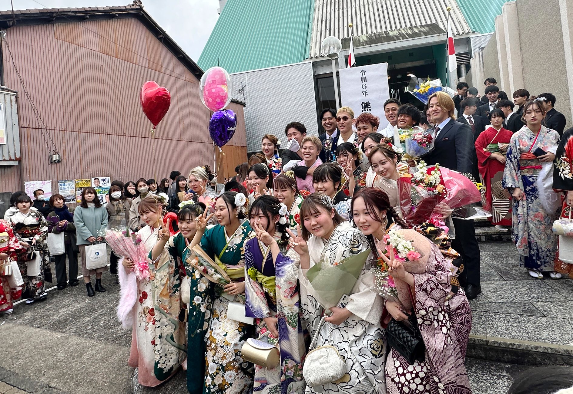 この後、新成人を代表し石田、川口さんがこれまで支えてくれた家族や地域への感謝を示し誓いの言葉。川口さんは教職の道へ、石田さんは更に高いステージでのラグビーに向け邁進していることを語り「熊野の一番の魅力は人と人との繋がりや人の温かさであると思います。20歳を迎えたこれからは自分たちが支える側として、この熊野の良さを守っていきたい。熊野市の人間として、一人の大人として恥じない行動をすることをお誓い申し上げます」と宣誓した。閉会後は地区ごとに記念撮影を行った。