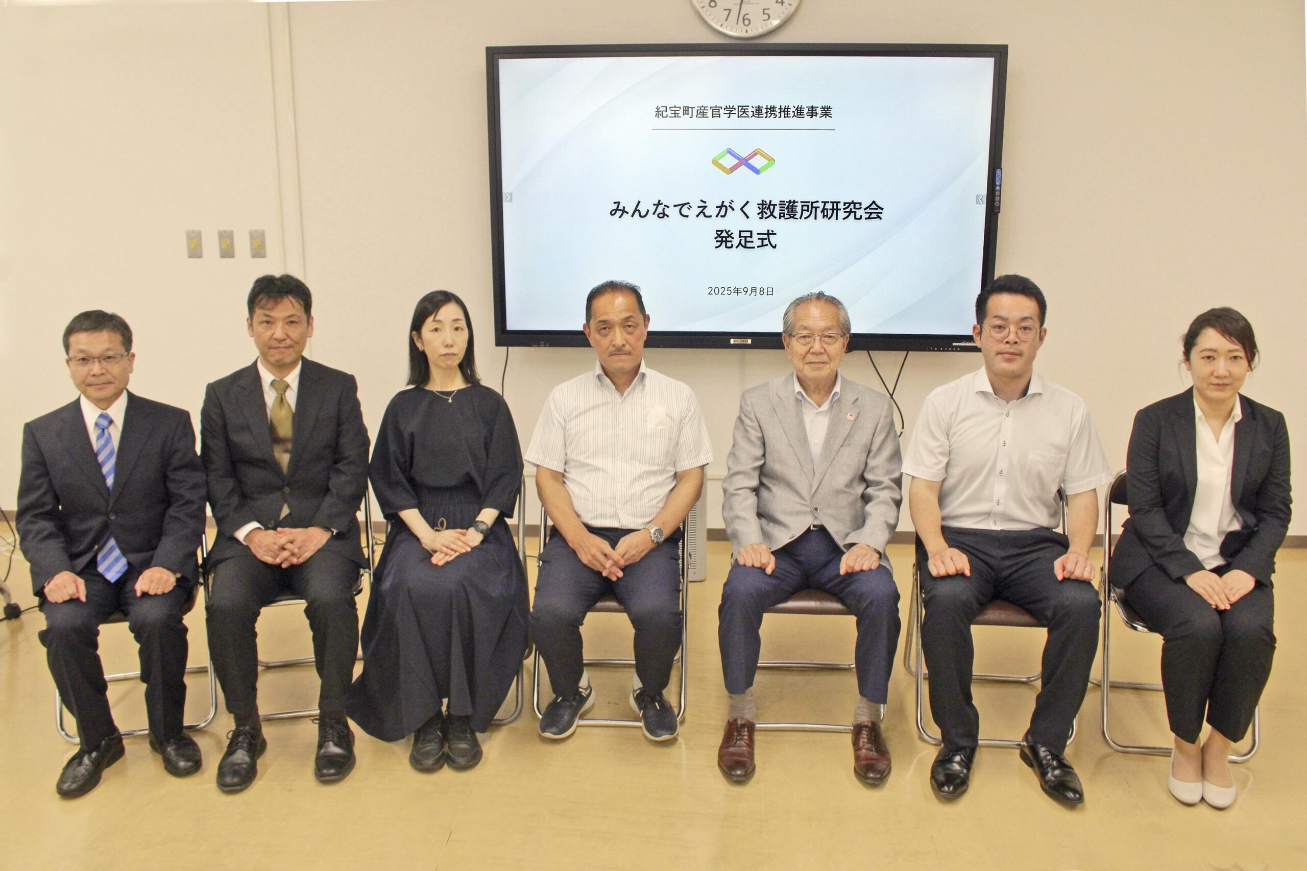 8日に紀宝町役場で開かれた発足式で、西田健町長は「災害大国であるわが国では、地域を問わず災害への備えが不可欠であり、本日スタートする研究会の成果が全国の自治体における災害時緊急医療救護所の整備に大いに貢献するものと確信しています」と挨拶。このほか、紀南医師会救護班の寺本泰班長は「この取り組みを進め、全国に発信していければ」、日本大学理工学部の江川香奈准教授は「学校を医療救護所として確保するのは難しいが、医療救護所に向けて整備することが大切。訓練に学生も参加して研究を進めていきたい」と述べた。