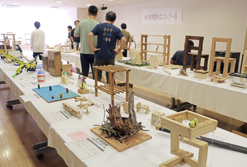 今年も力作揃い 1位に山西君(金山小)「大屋根リング」 木の町熊野木工コンクールに102点