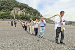 ラグビーフェスは熊野市ラグビーフットボール協会(井本伊織会長)がラグビーの普及や技術向上を目的に毎年開催しているもの。午前11時45分からは木本・熊野青藍高校と四日市農芸高校の試合が行われ、秋の大会に向け選手たちが試金石となる勝負を繰り広げた。木本・熊野青藍は前半早々から山口椋生君のトライを皮切りに31点を奪う猛攻。後半もリズム良くゲームを進め45対14で勝利した。