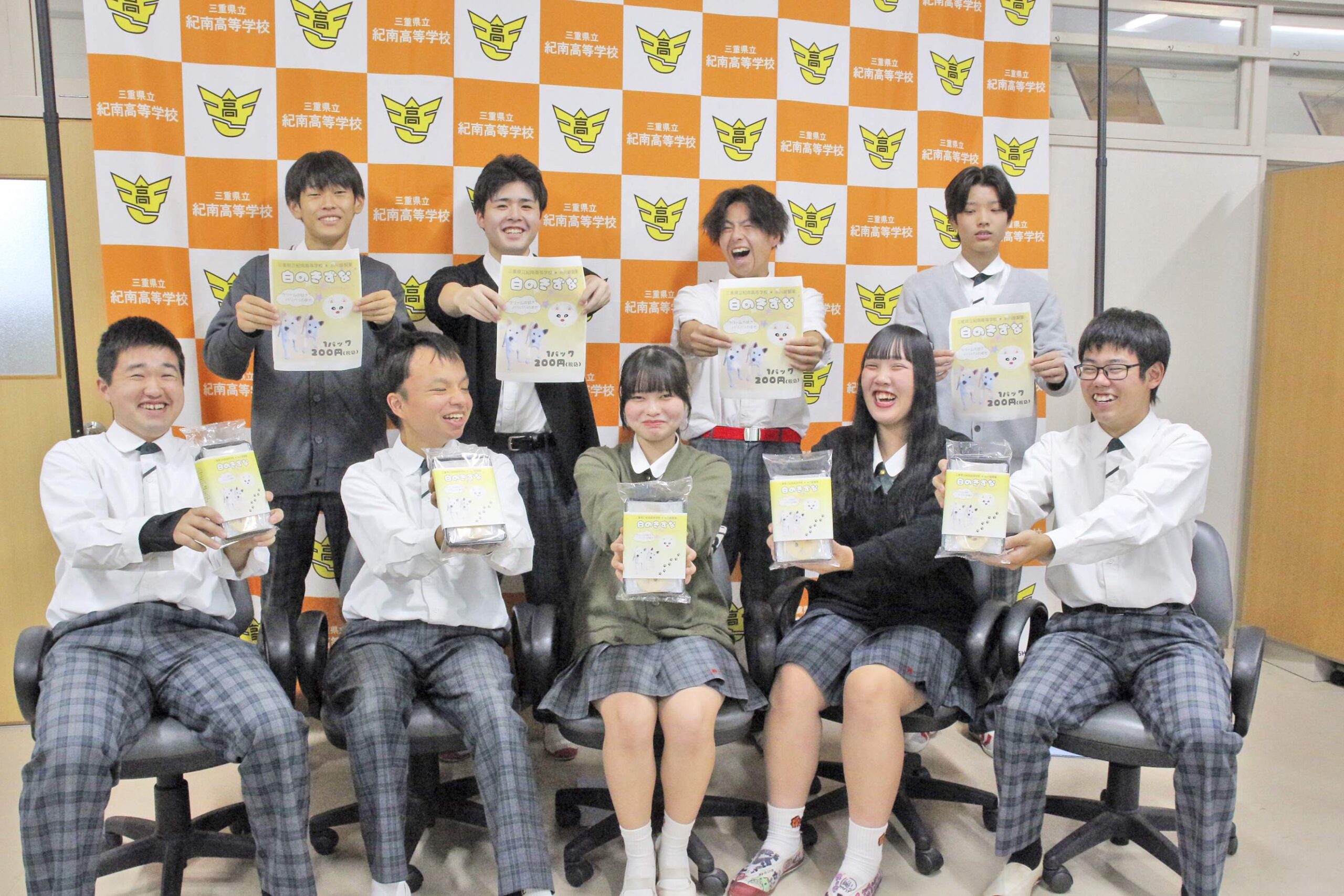 県立熊野青藍高校紀南校舎(紀南高校)の3年次選択科目「地域創造学」受講生とJRC(青少年赤十字)部が取り組む〝紀州犬の輪プロジェクト〟によってこのたび、オリジナル和菓子『白のきずな』が完成。11月2日(日)、道の駅パーク七里御浜で開かれる「みかん・リンゴ祭り」で販売される。