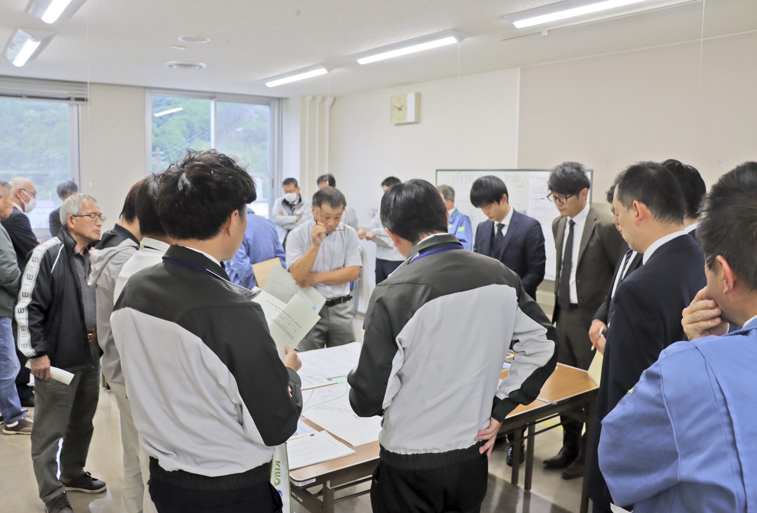 この後、農地にクマが出没し、水路で身動きが取れなくなっている状況を想定した机上訓練へと移った。住民らからクマ出没の通報を受け、市町が4条件を満たしているかを確認。住民への注意喚起を行うとともに市町に緊急銃猟対策本部を設け、捕獲者の選定から通行規制、避難誘導、地権者等調査、広報といった通報から現場対応、連絡体制などの手順をシミュレーションした。