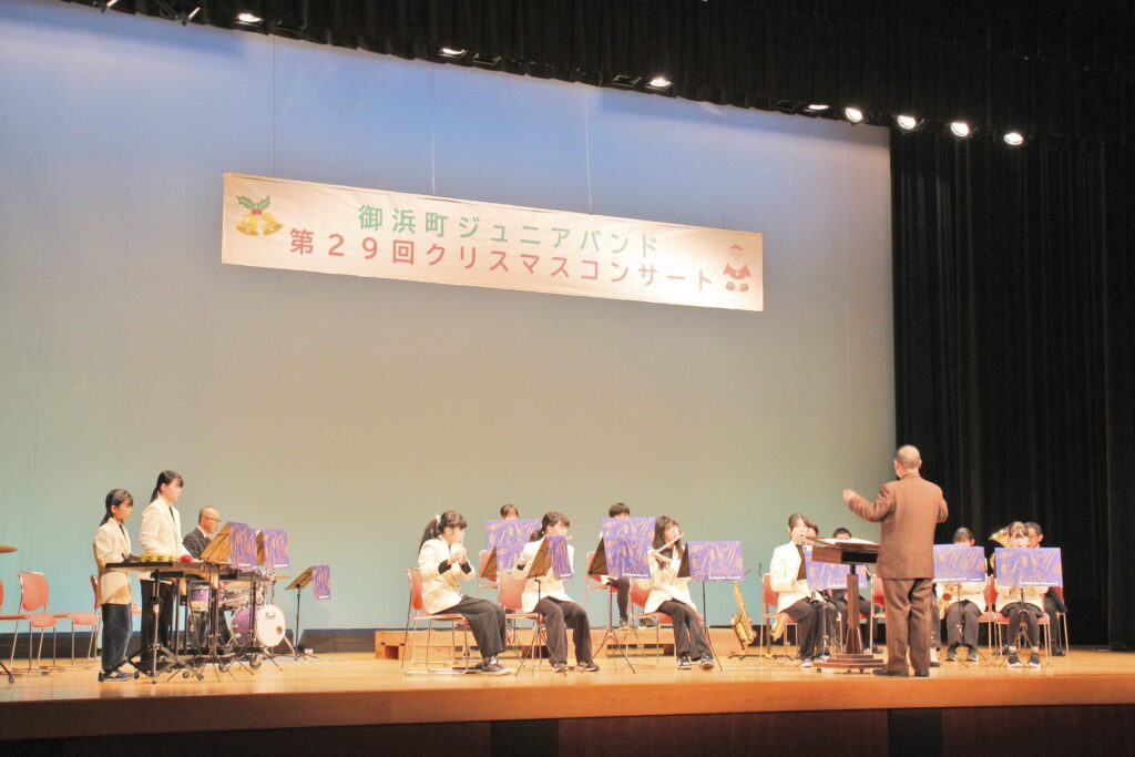 御浜町ジュニアバンドによる「第29回クリスマスコンサート」が16日、紀宝町生涯学習センターまなびの郷で開かれた。コンサートは3部形式で行われ、第1部と第3部で...