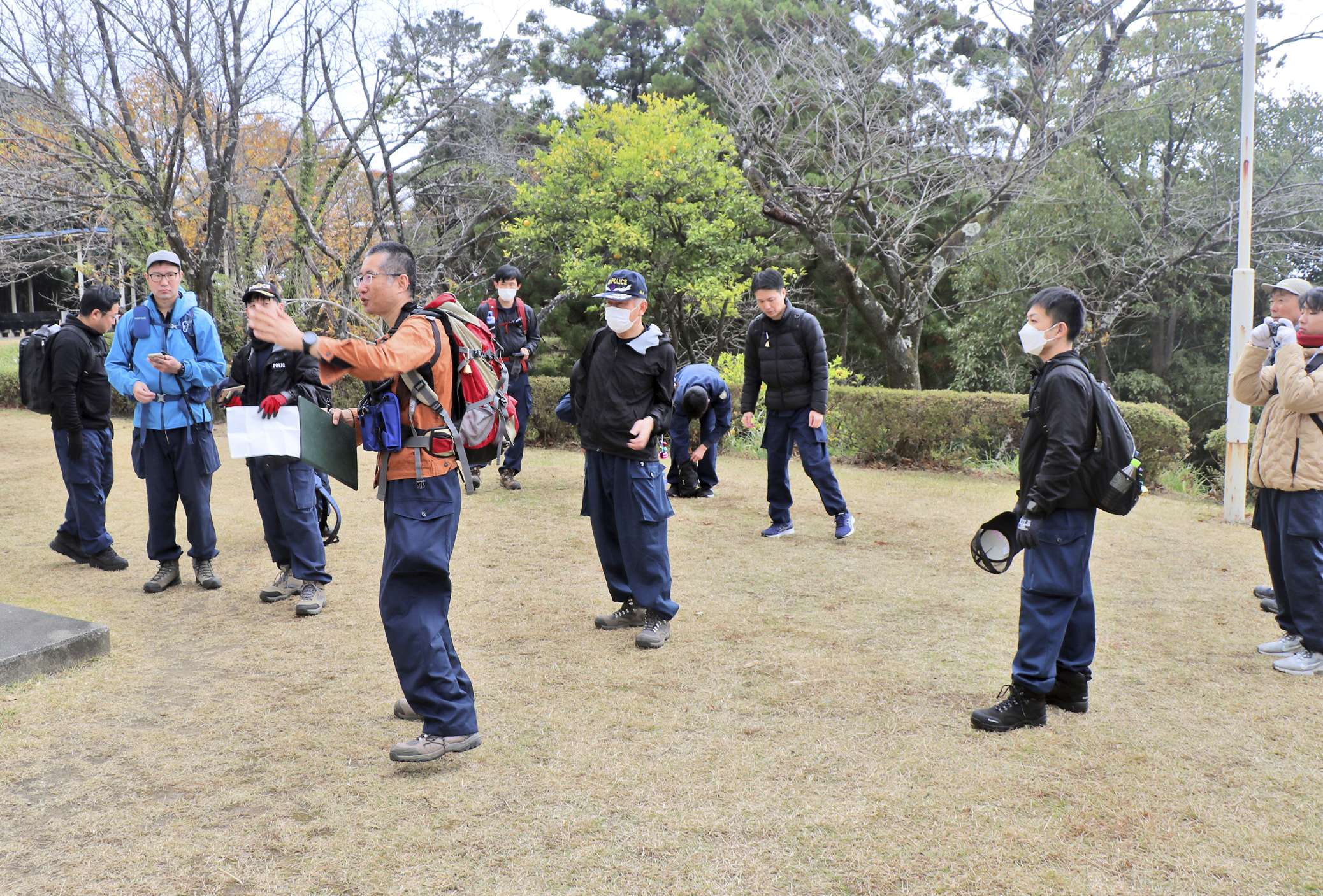 訓練は三重県警察本部地域課山岳警備係の國本康仁巡査部長が講師となり、まずは熊野少年自然の家で山岳警備の基本や登山アプリの活用などについて説明。國本巡査部長は「遭難した場合の捜索には位置情報の把握が大切で、いかに聞き出すか。しかし、高齢者の場合などスマホの使い方を理解できていない場合もあり、遭難者から聞き出した情報とアプリでの位置情報を照らし合わせながら効果的に捜索を」などと助言した。