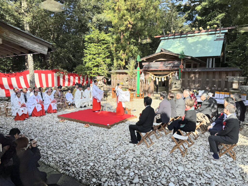 安産の神様として知られる熊野市有馬町、産田神社(山川均宮司)の例大祭が10日に営まれ、大勢の参拝客らで賑わいを見せた。 同神社はイザナギ、イザナミの命が火の...