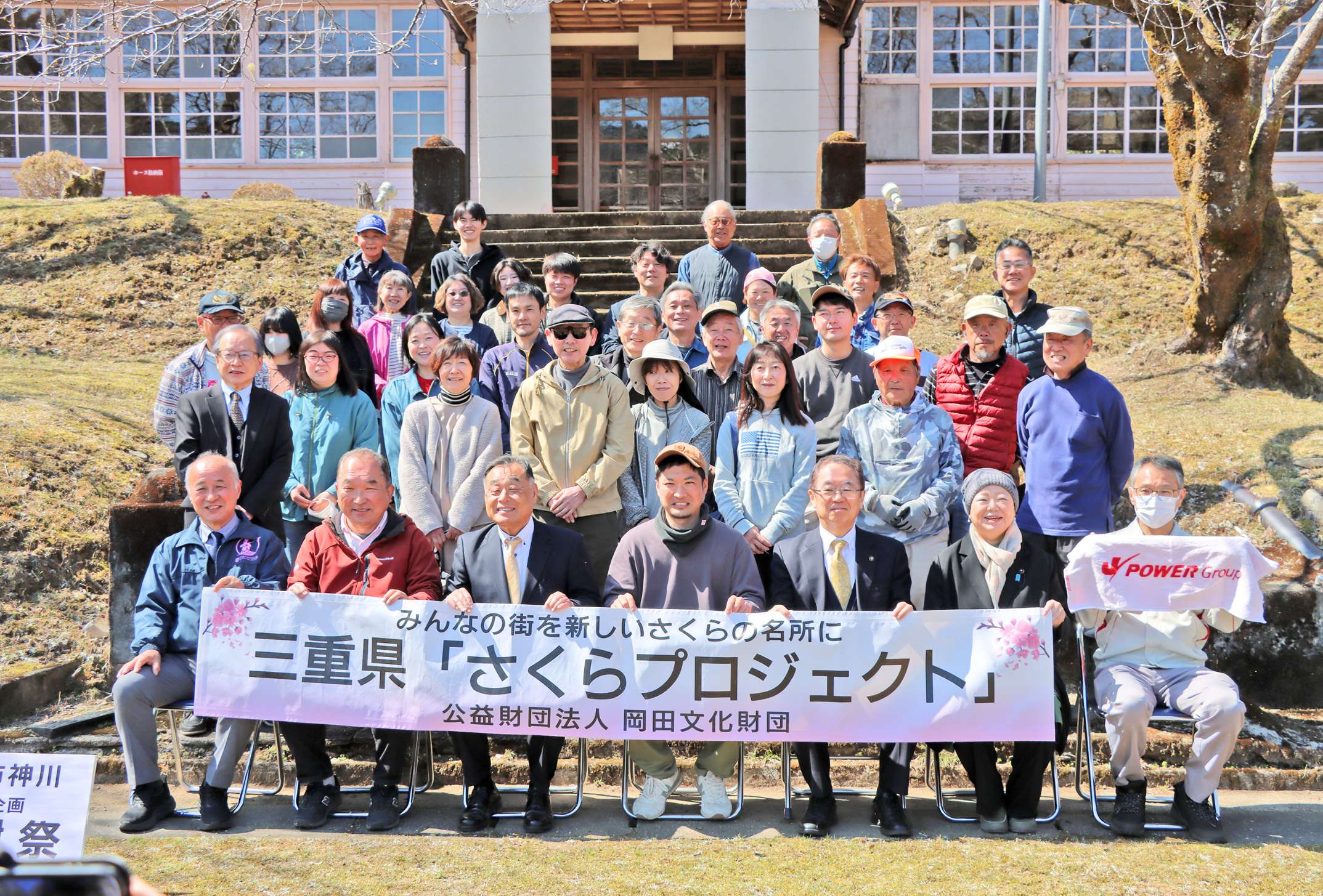岡田文化財団は令和5年度から、三重県内48ヵ所に計5千本の桜を植える3ヵ年計画の「さくらプロジェクト」を展開している。神川町では地域団体の神川企画が2017年から「神川桜まつり」の伝統を絶やさまいと、毎年春に「桜覧会」を開くなど桜を生かした地域づくりに取り組んできた。町内は東紀州でも有数のソメイヨシノの里として知られるが、多くが樹齢60年以上の古木で、延命処置を行いながらも将来を見据えた植樹が必要となっていたことから、同プロジェクトの協力を得て今回の取り組みが実現した。